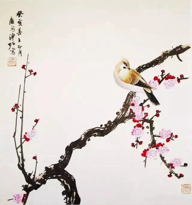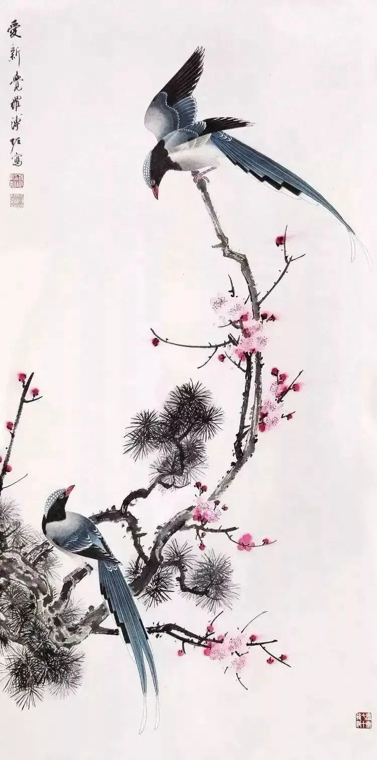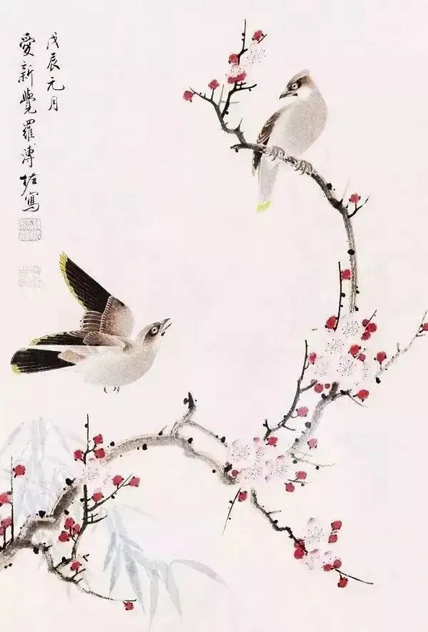溥佐的花鸟画技艺精湛,他善于捕捉自然界中生态的美妙瞬间,通过细腻的笔触和丰富多彩的色彩,将花鸟的姿态和情感表达得栩栩如生。他的画作中的鸟儿,羽毛丰满,姿态各异,仿佛能听到它们的歌唱和呢喃;而花朵则在他的笔下绽放出别样的光彩,或娇艳欲滴,或清新淡雅,令人陶醉其中。