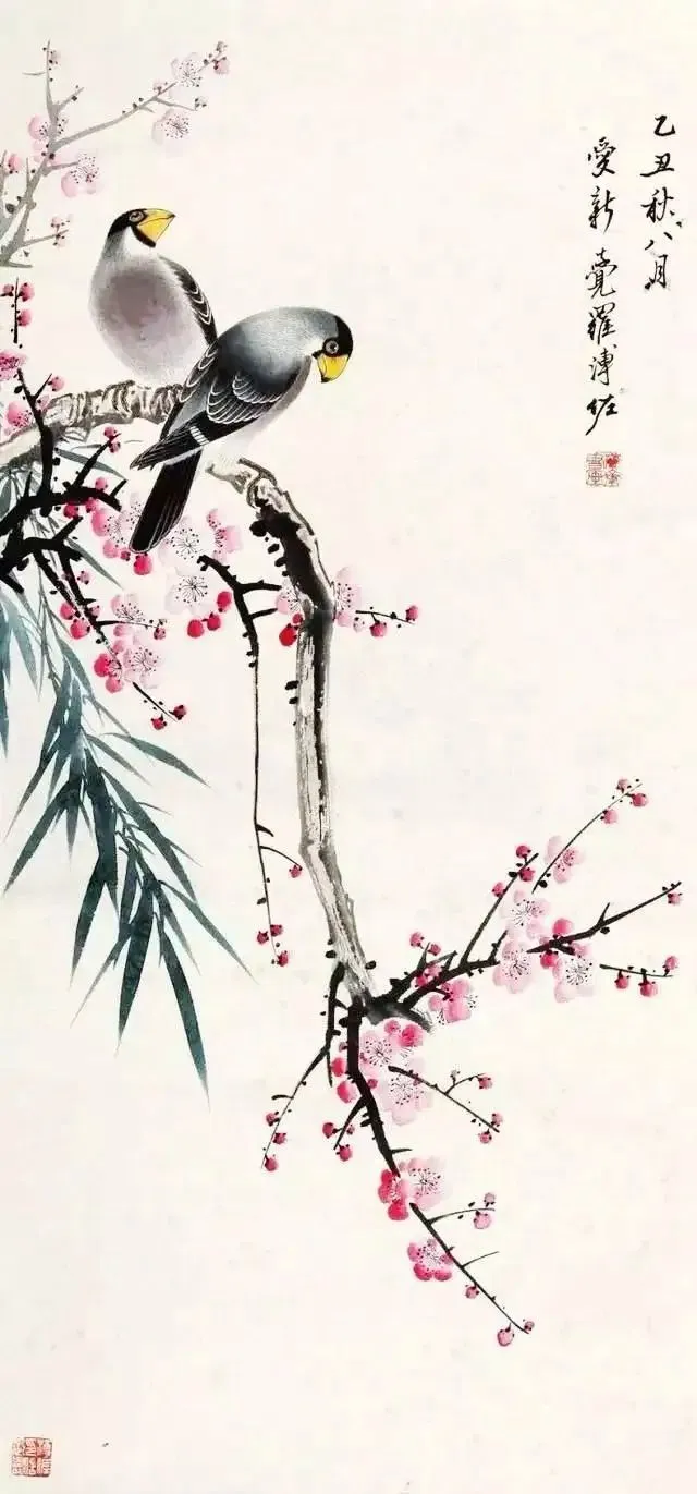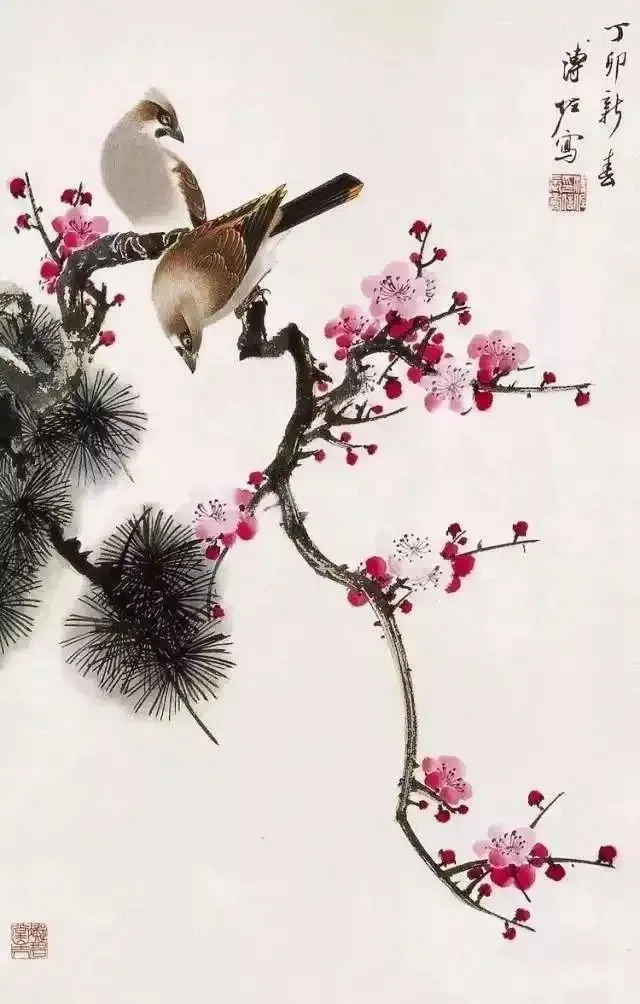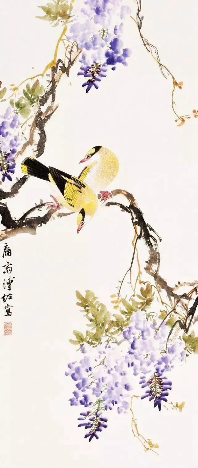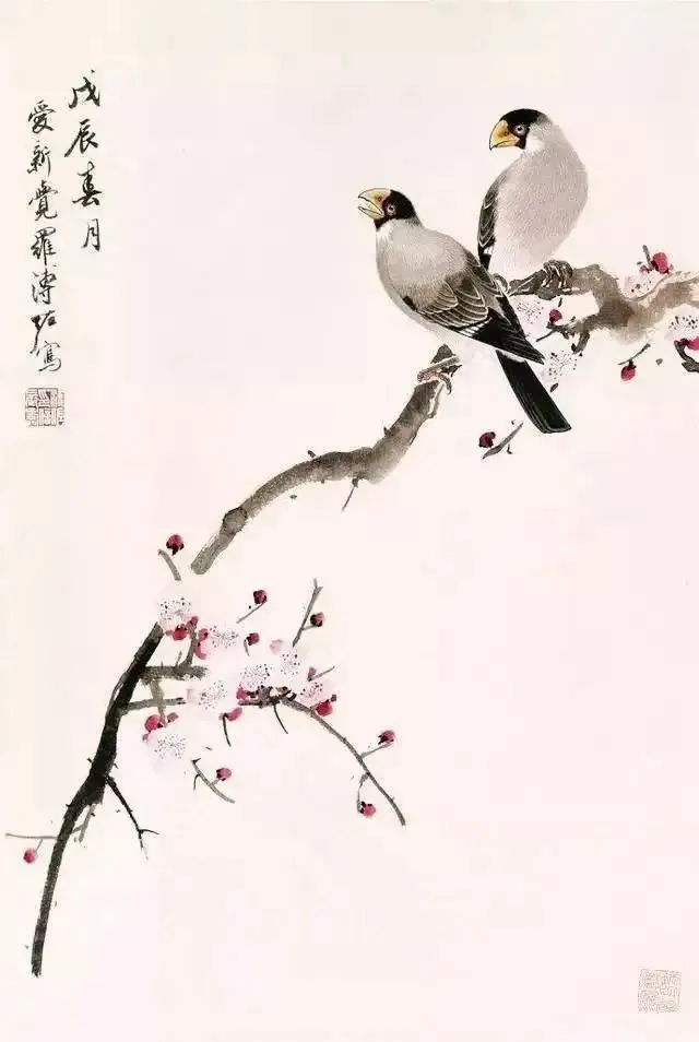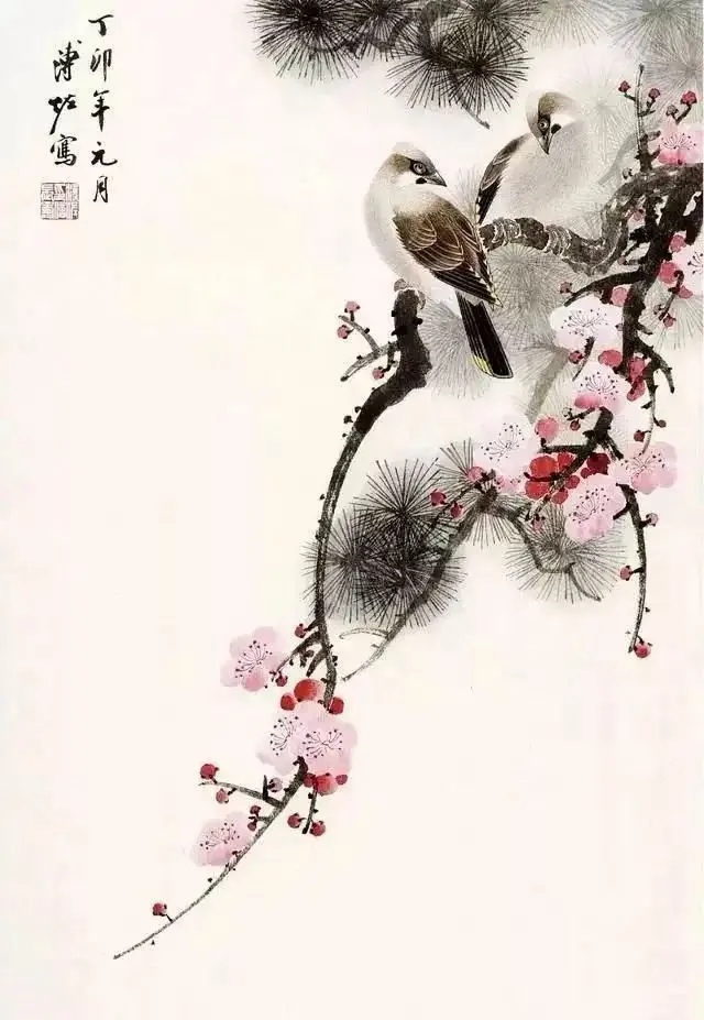 溥佐的花鸟画,气韵飘逸、清秀脱俗,既有传统的笔墨韵味,又融入了现代的艺术审美。他的笔触细腻而富有张力,能够生动地表现出花鸟的神态和情感。在他的笔下,花鸟不再仅仅是自然的元素,而是被赋予了灵魂与情感的象征。每一幅作品都仿佛是一个生动的故事,诉说着生命的繁华与凋零,喜悦与哀愁。
